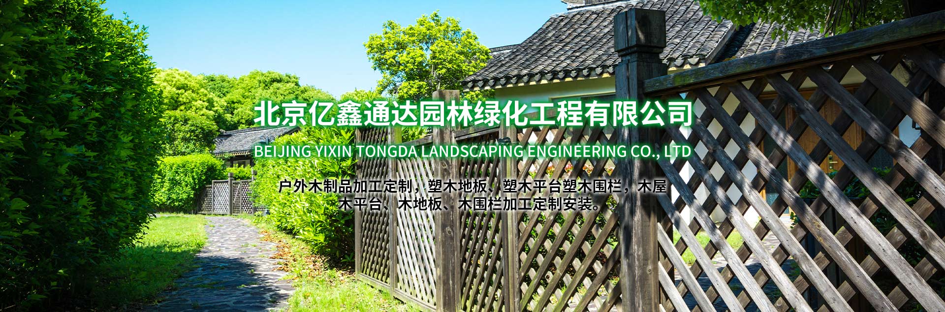北京億鑫通達園林綠化工程有限公司主營:戶外木制品加工定制,塑木地板、塑木平臺塑木圍欄,木屋、木平臺、木地板、木圍欄加工定制安裝。